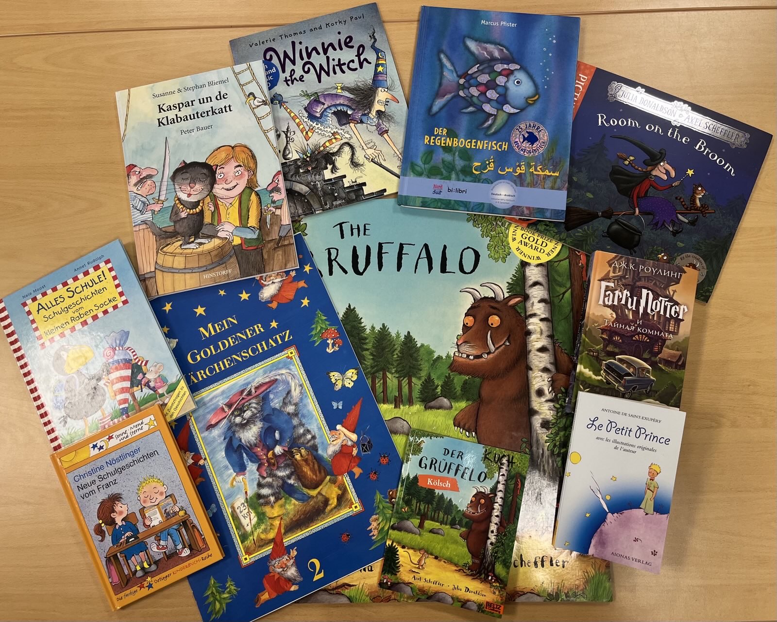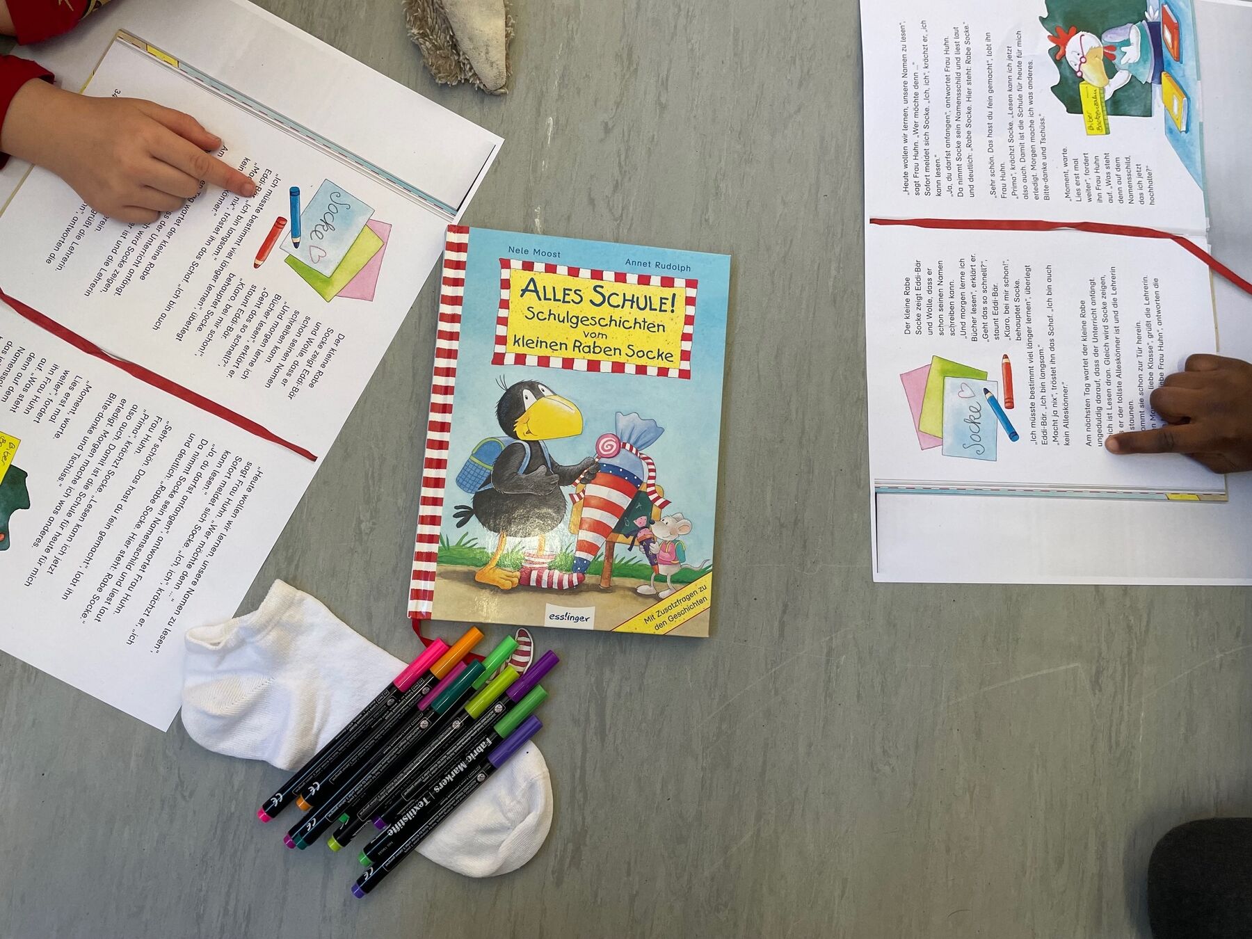 Am 21. November drehte es sich auch bei uns um das Thema Lesen. Während die Kinder fleißig in ihren Klassen lasen, öffneten wir die Schule nach der großen Pause für eine besondere Gelegenheit: Eltern, Großeltern, Lehrkräfte und andere Erwachsene präsentierten den Heranwachsenden Kinderbücher in ihrer Mutter- oder Lieblingsfremdsprache. Mit großen Augen lauschten die Schülerinnen und Schüler den Geschichten in fremden Sprachen und sprachen danach über den Inhalt oder malten zum Gehörten. Völlig hin und weg kehrten sie in ihre Klassen zurück und berichteten aufgeregt von den anders, aber schön klingenden Wörtern. Danach ging es weiter: entweder erneut in der Klasse oder übergreifend, wie in der 1a und 2a, die mit diesem Tag mit Rabe Socke ihre jahrgangsübergreifende Tandem-Lesestunde begannen. Im Anschluss wurde es nicht nur in dieser Gruppe aktiv, indem Socken verziert wurden, sondern auch in anderen Lerngruppen und Klassen wurde das eine oder andere gebastelt. Ein toller Tag neigte sich viel zu schnell dem Ende zu und alle waren sich einig: Das Vorlesen in fremden Sprachen sollte zur Tradition werden und: Bücher sind wirklich spannende Reisen in fremde Welten.