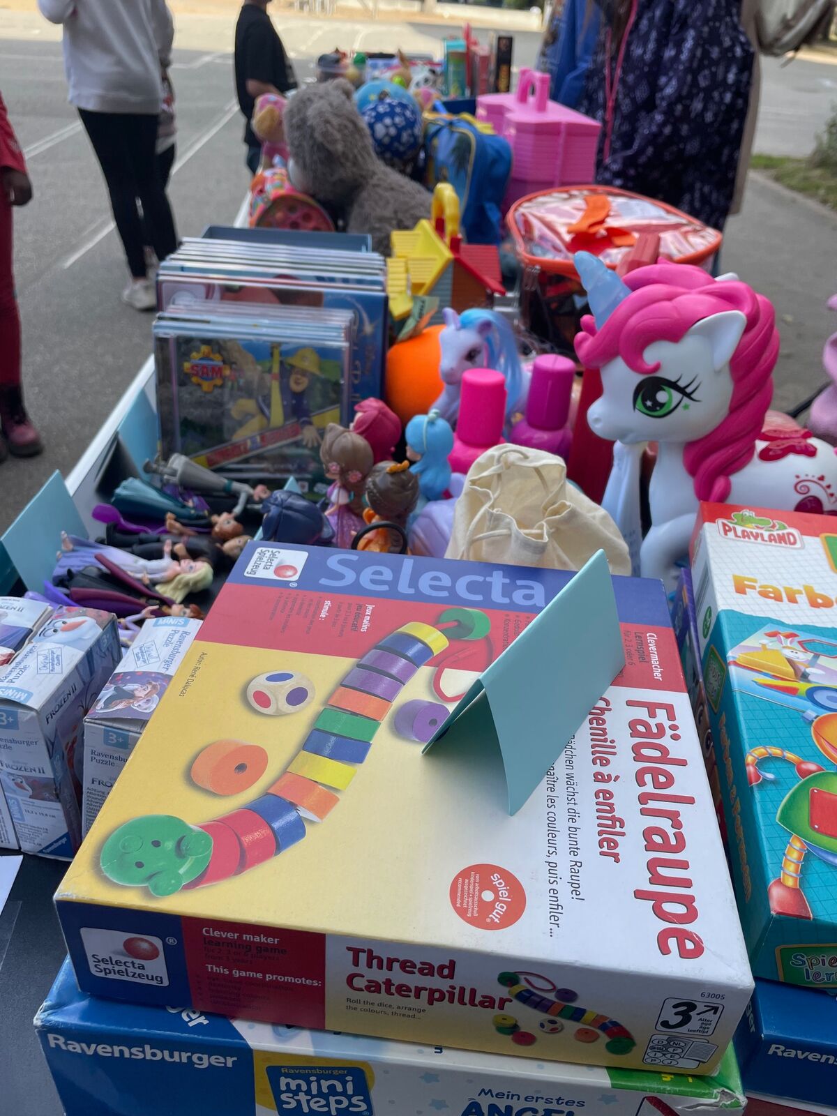 „Kaufen Sie hier! Kommen Sie und schauen Sie”, rief eine Schülerin auf dem heutigen Flohmarkt am 30.9. an unserer Schule und schaffte es tatsächlich, die Besucherinnen zu einem Kauf an dem Stand ihrer Freundin zu begeistern. Viele Kinder sahen sich die zahlreichen anspruchsvollen und liebevoll präsentierten Angebote an und handelten wie die Großen. Von Barbies über Spielzeugautos bis hin zu Büchern und Lernspielen - die meisten Jungen und Mädchen hielten am Ende des Nachmittags ein kleines Schätzchen in ihren Händen, und die Verkäuferinnen strahlten über die aufgefüllten Spardosen. Nur die vielen Kleidungsstücke aus der Fundgrube riefen traurig nach ihren Besitzern, wurden aber wenig beachtet. Daher noch einmal der Aufruf: „Bitte holt uns ab!” – Zu finden sind eine Menge Jacken, Mützen, Pullover und Strickjacken in unserer „Fundgrube”. Liebe Kinder und Erziehungsberechtigte: Schaut doch einmal vorbei und nehmt eure Kleidung wieder mit.
